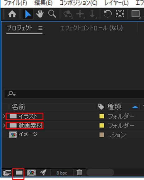 「イラスト」と「動画素材」という名前の新規フォルダを作成します。