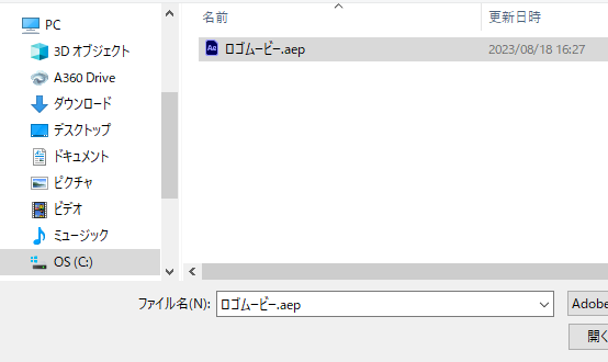 作業を始めたら、まず早めに名前をつけて保存しておくのがおすすめです。途中でトラブルが起きても、保存しておけば安心です。ファイル名は内容がわかりやすい名前にしておくと、あとで探しやすくなります。After Effectsのプロジェクトファイルは、「.aep」の拡張子で保存されます。