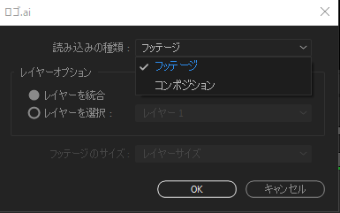 After EffectsでAdobe Illustratorのファイル(.aiファイル)、Adobe Photoshopのファイル(.psdファイル)などをインポートするとき、いくつかのオプションがあります。これにより、素材の扱い方やプロジェクト内での配置方法が変わってきます。