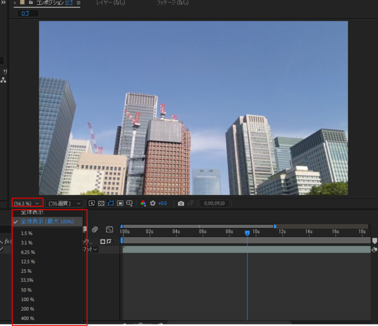 - コンポジションの高さに合わせる (Fit to Comp Height)