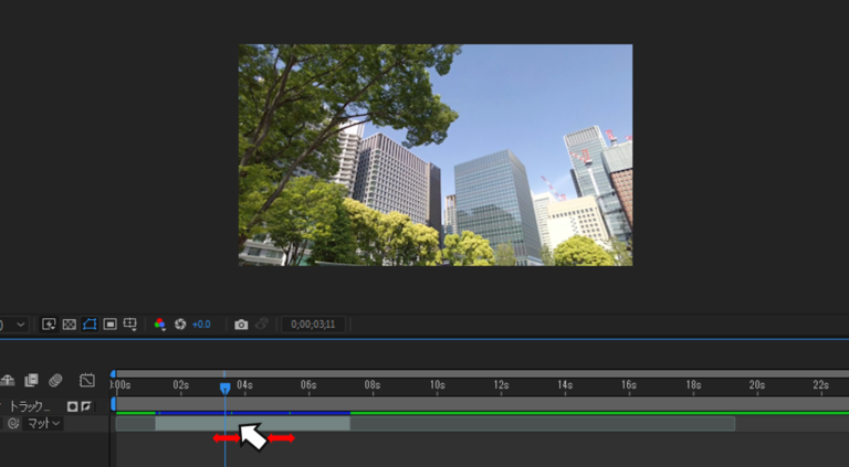 - 持続時間を短くする: レイヤーの右端(または左端)をクリックし、ドラッグしてレイヤーの幅を短くします。