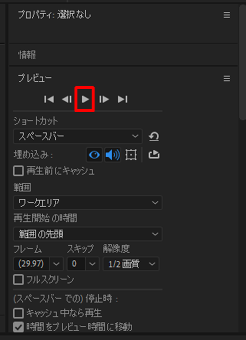※プレビューパネルが表示されていない場合はメニューバーから[ウィンドウ]→[プレビュー]を選択し表示させて下さい。