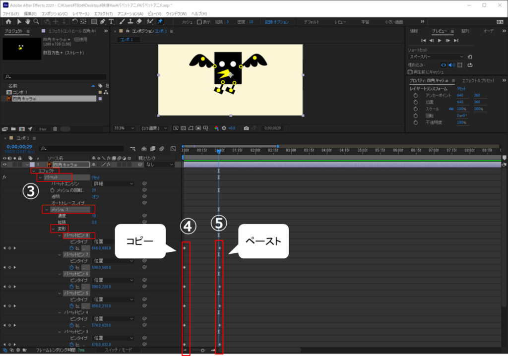 【After Effects基礎】パペットツールの使い方|キャラクターを簡単に動かす方