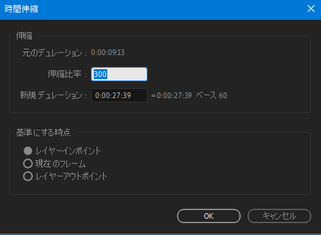 ②[時間伸縮]パネルの伸縮比率に数値を入力します。