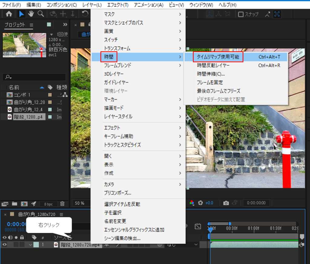 【方法②】タイムリマップで時間調整をする