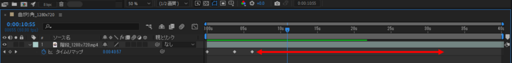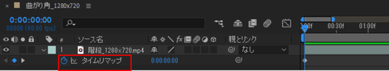 ②レイヤーにタイムリマップが追加されます。