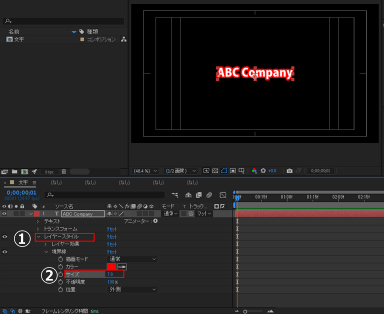 After Effectsでは、文字に縁取りをつけることで背景に埋もれにくくなり、視認性が上がります。特に動画の背景が複雑だったり、明るい部分と暗い部分が混在していたりする場合は、縁取りを入れるだけで文字がかなり読みやすくなります。