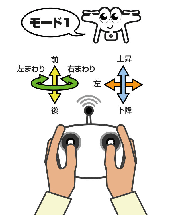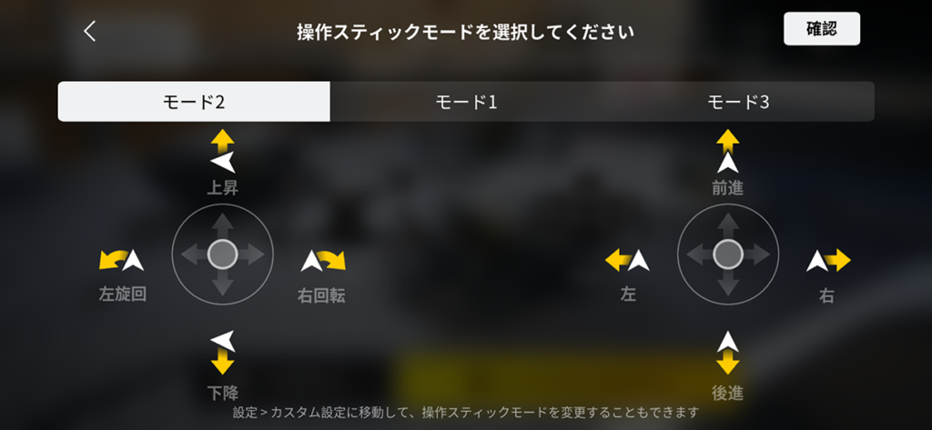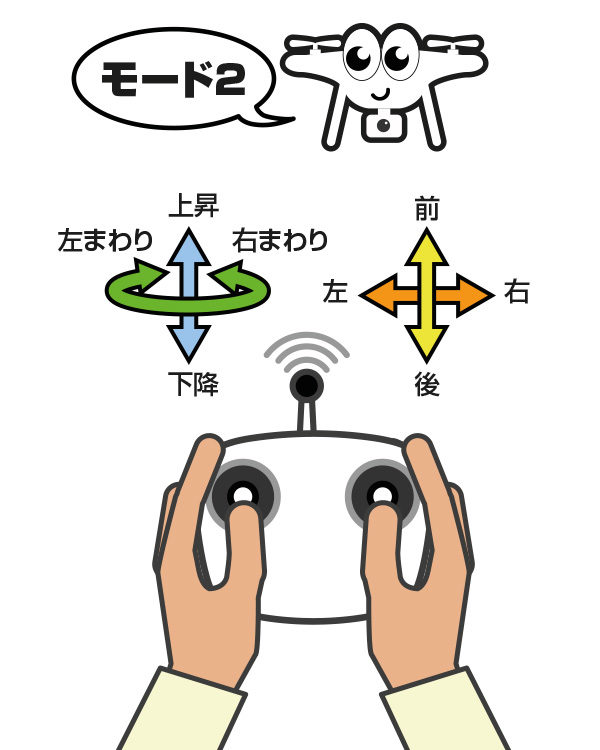 市販されているドローンではモード2が多く、設定で切り替えする形が多いです。